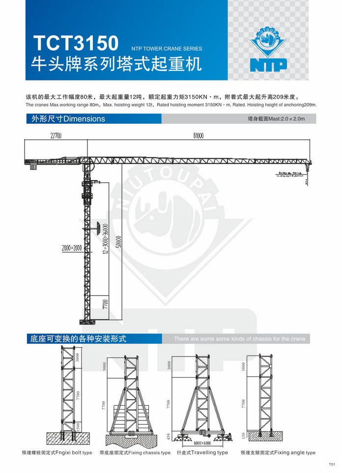 Name:TCT3150-12T TOPLESS TOWER CRANE